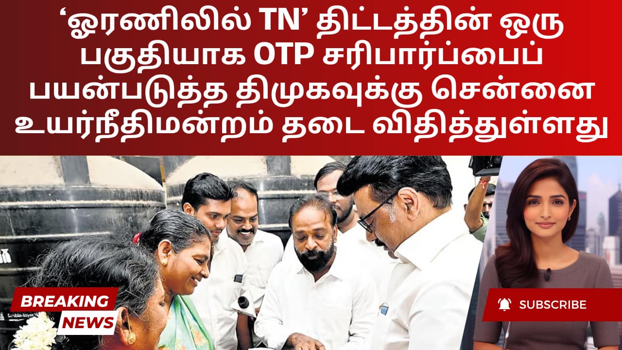 ‘ஓரணிலில் TN’ திட்டத்தின் ஒரு பகுதியாக OTP சரிபார்ப்பைப் பயன்படுத்த திமுகவுக்கு சென்னை உயர்நீதிமன்றம் தடை விதித்துள்ளது
