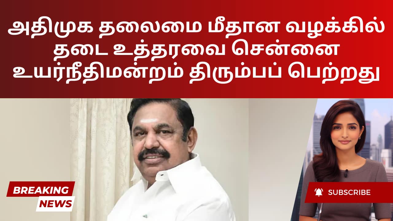 2022 ஆம் ஆண்டு அதிமுக பொதுச் செயலாளராக எடப்பாடி கே பழனிசாமி தேர்ந்தெடுக்கப்பட்டதை எதிர்த்து தொடரப்பட்ட வழக்கு தொடர்பான சிவில் நீதிமன்ற நடவடிக்கைகளுக்கு விதிக்கப்பட்ட இடைக்காலத் தடையை சென்னை உயர் நீதிமன்றம் வியாழக்கிழமை திரும்பப் பெற்றது. முதன்மை உறுப்பினர்களின் நேரடி வாக்கெடுப்புக்குப் பதிலாக கட்சியின் பொதுக்குழுவால் அவர் தேர்ந்தெடுக்கப்பட்டதே இந்த சவாலுக்குக் காரணம்.