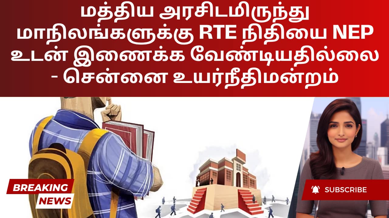 மத்திய அரசிடமிருந்து மாநிலங்களுக்கு RTE நிதியை NEP உடன் இணைக்க வேண்டியதில்லை – சென்னை உயர்நீதிமன்றம்