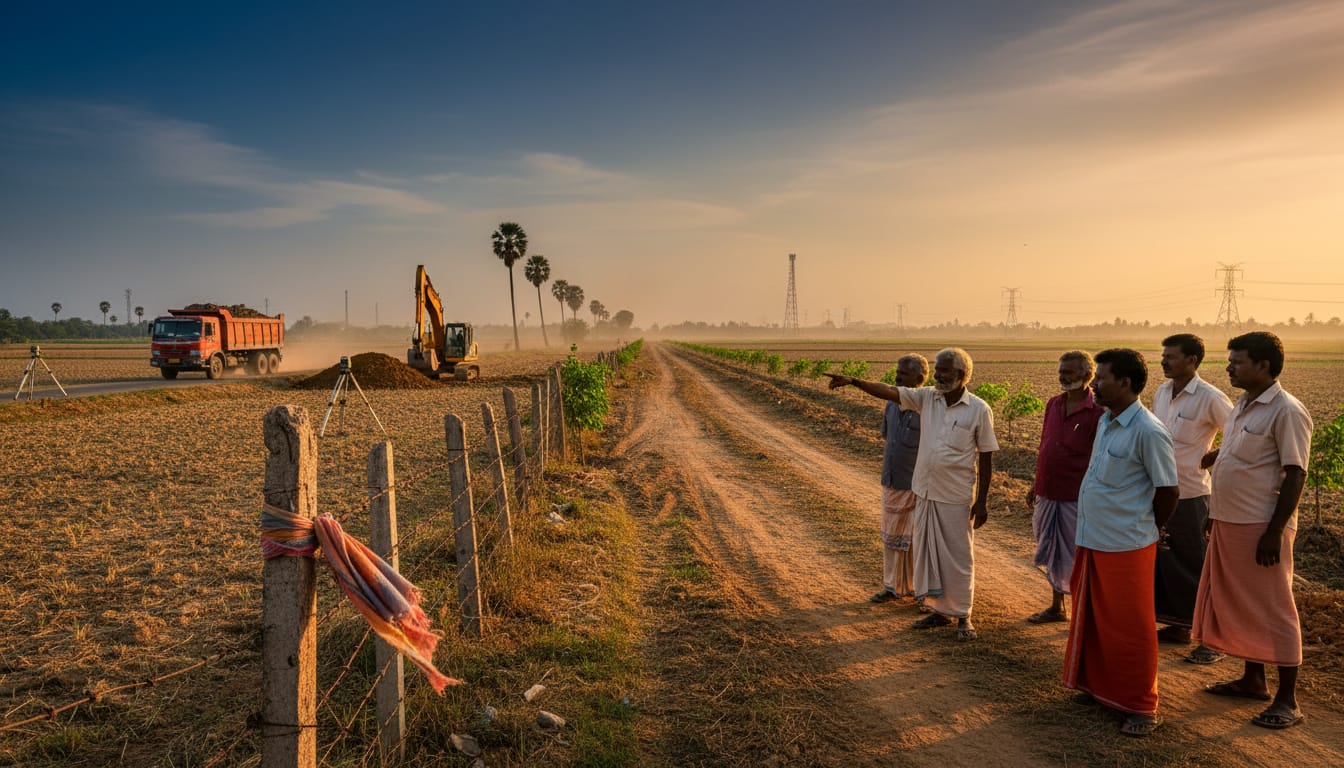 மதுரை: தென் தமிழகத்தின் உள்கட்டமைப்பு மற்றும் தொழில் வளர்ச்சியில் ஒரு மாபெரும் மைல்கல்லாக அமையவுள்ள புதிய சாலைத் திட்டத்திற்கான பணிகள் வேகமெடுத்துள்ளன. தூத்துக்குடி மற்றும் கன்னியாகுமரி மண்டலங்களை இணைக்கும் வகையில், சுமார் 104 கிலோமீட்டர் தொலைவுக்கு அமைக்கப்படவுள்ள புதிய நான்கு வழிச்சாலைத் திட்டத்திற்காக, 700-க்கும் மேற்பட்ட ஏக்கர் நிலங்களை கையகப்படுத்தும் பணிகளை அதிகாரிகள் தொடங்கியுள்ளனர். இத்திட்டம் தென் மாவட்டங்களின் பொருளாதார வளர்ச்சியில் முக்கிய பங்காற்றும் என எதிர்பார்க்கப்படுகிறது.