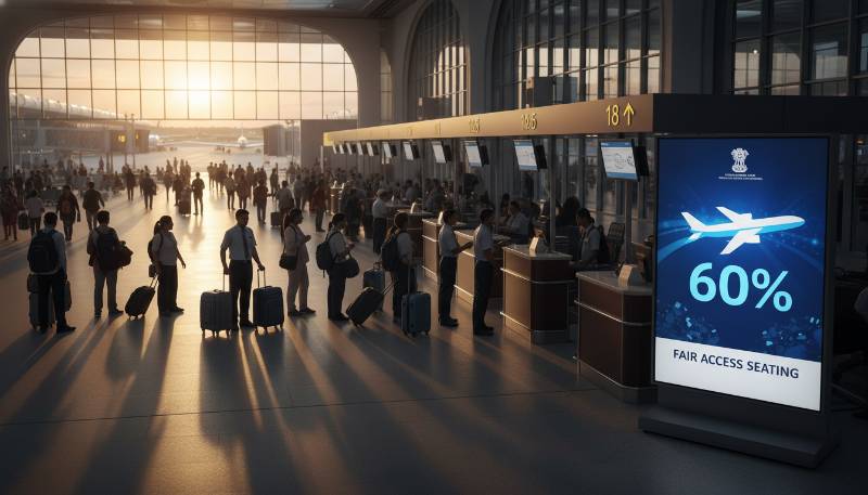 இந்திய விமானப் போக்குவரத்துத் துறையில் இதுவரை கண்டிராத ஒரு புரட்சிகரமான மற்றும் விவாதத்திற்குரிய முடிவை மத்திய விமானப் போக்குவரத்து அமைச்சகம் எடுத்துள்ளது. நாட்டின் சாமானிய மக்களும் வான்வழிப் பயணத்தைப் பயன்படுத்த வேண்டும் என்கிற நோக்கில், அனைத்து உள்நாட்டு விமானங்களிலும் 60 விழுக்காடு இருக்கைகளை எவ்விதக் கட்டணமும் இன்றி (Free of Charge) ஒதுக்கீடு செய்ய வேண்டும் என்று அதிரடி உத்தரவு பிறப்பிக்கப்பட்டுள்ளது. இந்தத் திட்டம் ‘அனைவருக்கும் சமமான வாய்ப்பு’ (Fair Access) என்பதை உறுதிப்படுத்தும் நோக்கில் கொண்டுவரப்பட்டுள்ளதாக அரசுத் தரப்பில் தெரிவிக்கப்பட்டுள்ளது.