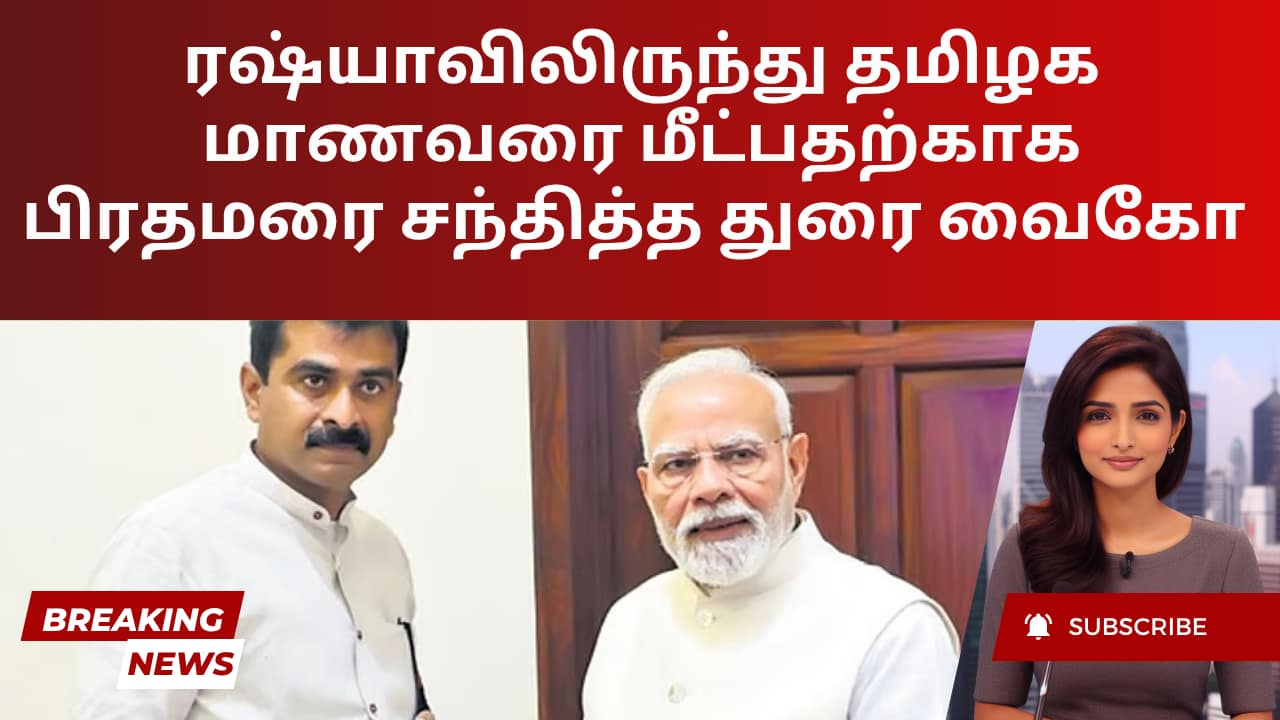 ரஷ்யாவிலிருந்து தமிழக மாணவரை மீட்பதற்காக பிரதமரை சந்தித்த துரை வைகோ