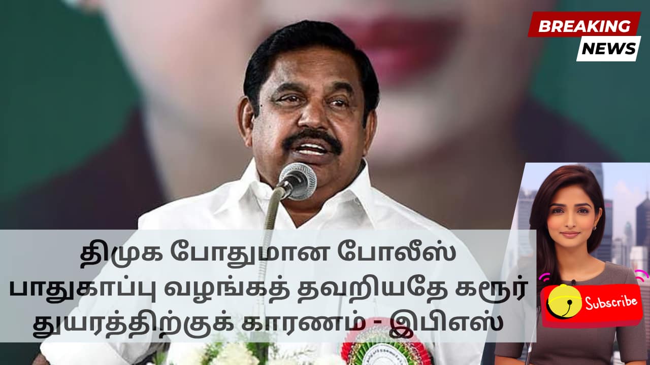 திமுக போதுமான போலீஸ் பாதுகாப்பு வழங்கத் தவறியதே கரூர் துயரத்திற்குக் காரணம் – இபிஎஸ்