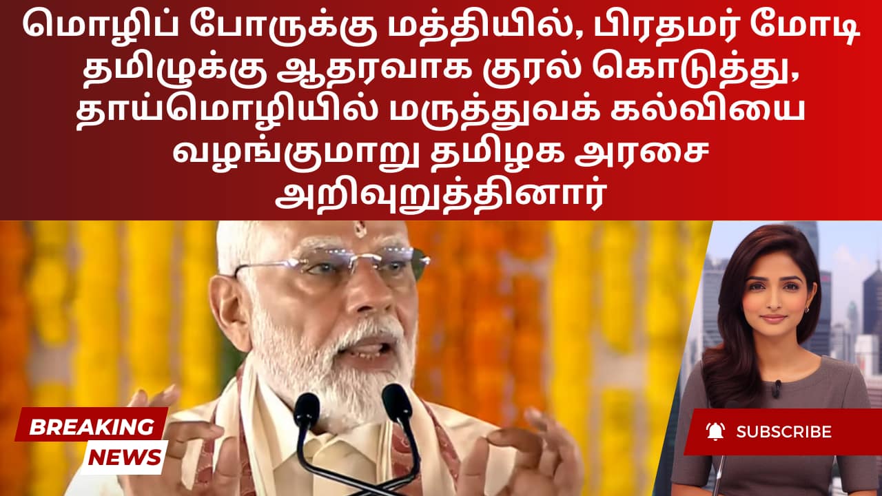 மொழிப் போருக்கு மத்தியில், பிரதமர் மோடி தமிழுக்கு ஆதரவாக குரல் கொடுத்து, தாய்மொழியில் மருத்துவக் கல்வியை வழங்குமாறு தமிழக அரசை அறிவுறுத்தினார்