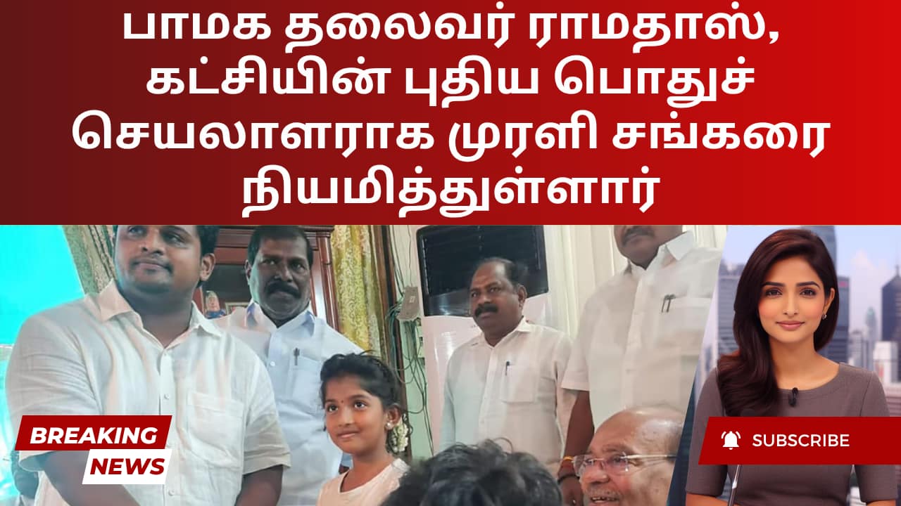 பாமக தலைவர் ராமதாஸ், கட்சியின் புதிய பொதுச் செயலாளராக முரளி சங்கரை நியமித்துள்ளார்
