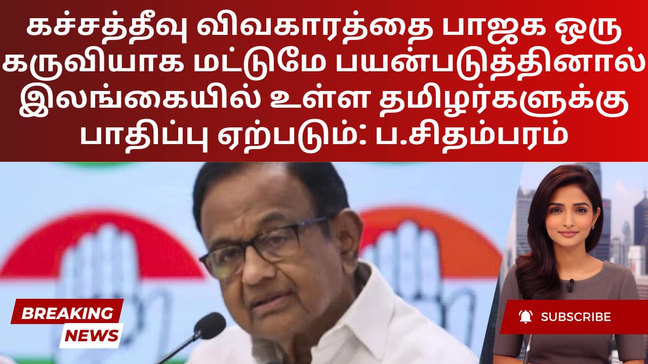 கச்சத்தீவு விவகாரத்தை பாஜக ஒரு கருவியாக மட்டுமே பயன்படுத்தினால் இலங்கையில் உள்ள தமிழர்களுக்கு பாதிப்பு ஏற்படும்: ப.சிதம்பரம்