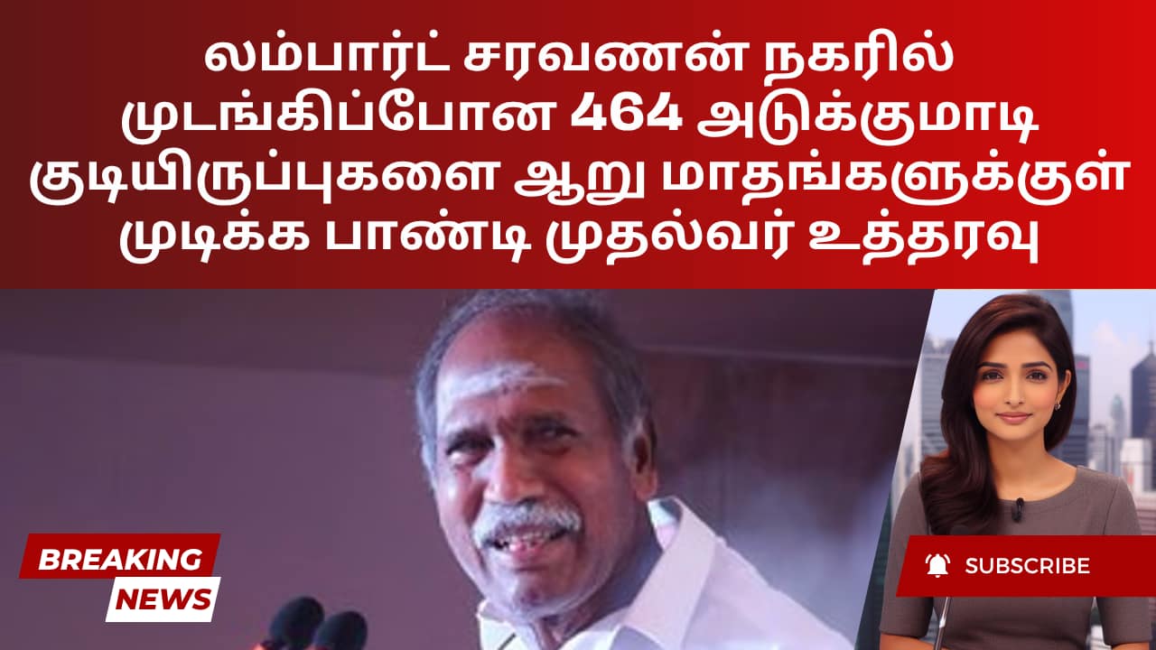 லம்பார்ட் சரவணன் நகரில் முடங்கிப்போன 464 அடுக்குமாடி குடியிருப்புகளை ஆறு மாதங்களுக்குள் முடிக்க பாண்டி முதல்வர் உத்தரவு
