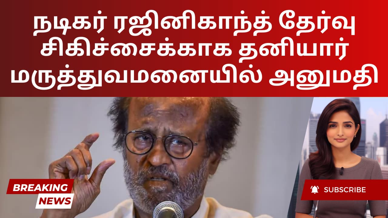 நடிகர் ரஜினிகாந்த் தேர்வு சிகிச்சைக்காக தனியார் மருத்துவமனையில் அனுமதி