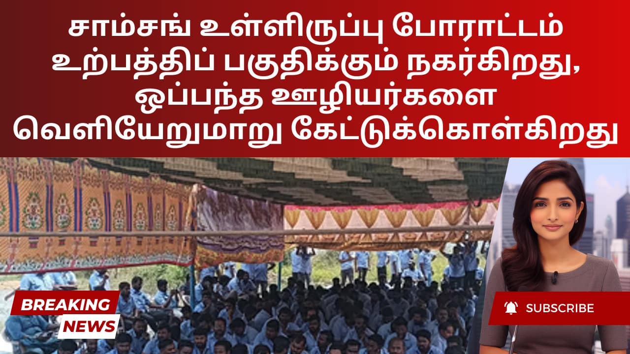 வியாழக்கிழமை காலை ஸ்ரீபெரும்புதூரில் உள்ள சாம்சங் நிறுவனத்தின் உற்பத்தி ஆலையில் நூற்றுக்கணக்கான தொழிலாளர்கள் நடத்தி வரும் உள்ளிருப்பு போராட்டம் தீவிரமடைந்தது. போராட்டக்காரர்கள் தங்கள் நியமிக்கப்பட்ட பகுதியிலிருந்து உற்பத்தி தளத்திற்கு நகர்ந்தனர். இந்த மாற்றம் இடையூறுகளுக்கு வழிவகுத்தது, போராட்டத்தில் ஈடுபட்டுள்ள தொழிலாளர்கள் உற்பத்தியில் ஈடுபட்டுள்ள ஒப்பந்த ஊழியர்களை வெளியேறுமாறு கேட்டதாக கூறப்படுகிறது. இது உற்பத்தியைப் பாதித்ததாக தொழிலாளர்கள் கூறினாலும், செயல்பாடுகள் இன்னும் பாதிக்கப்படவில்லை என்று சாம்சங் வட்டாரங்கள் தெரிவித்துள்ளன.
