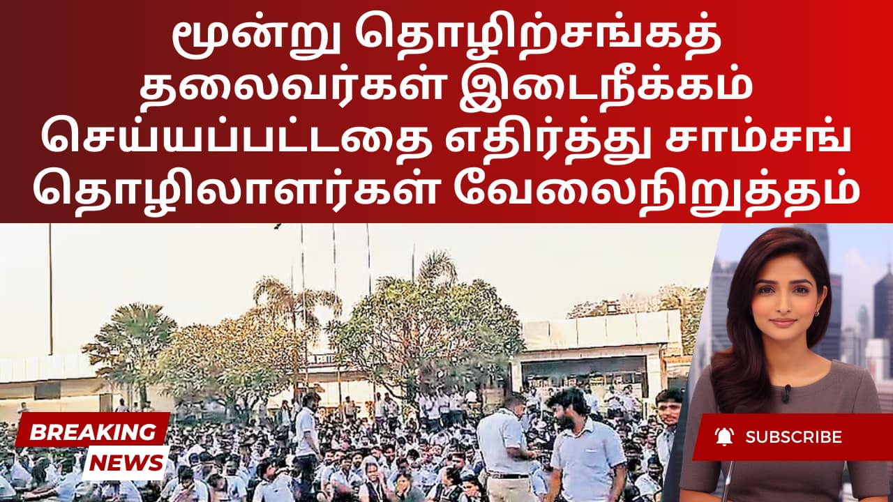 மூன்று தொழிற்சங்கத் தலைவர்கள் இடைநீக்கம் செய்யப்பட்டதை எதிர்த்து சாம்சங் தொழிலாளர்கள் வேலைநிறுத்தம்