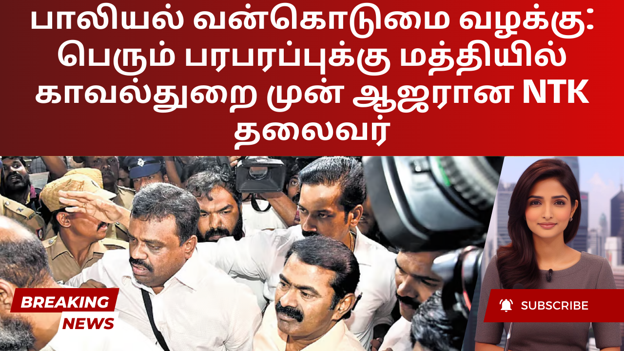 நடிகை ஒருவர் தாக்கல் செய்த பாலியல் வன்கொடுமை வழக்கிற்காக நாம் தமிழர் கட்சி தலைமை ஒருங்கிணைப்பாளர் சீமான் வெள்ளிக்கிழமை வளசரவாக்கம் காவல்துறை முன் ஆஜரானார். அதற்கு முந்தைய நாள், நீலாங்கரையில் உள்ள அவரது வீட்டில் அவரது உதவியாளர் சம்மனை கிழித்தபோது ஒரு வியத்தகு காட்சி நடந்தது. ஆரம்பத்தில் காவல்துறை முன் ஆஜராக மாட்டேன் என்று கூறிய போதிலும், சீமான் வெள்ளிக்கிழமை மாலை தனது கட்சி ஆதரவாளர்களுடன் சென்னை வந்தார். பின்னர், காவல் நிலையத்திற்குச் செல்வதற்கு முன்பு தனது வழக்கறிஞர்களுடன் கலந்துரையாட வடபழனியில் உள்ள ஒரு ஹோட்டலில் சிறிது நேரம் தங்கினார்.