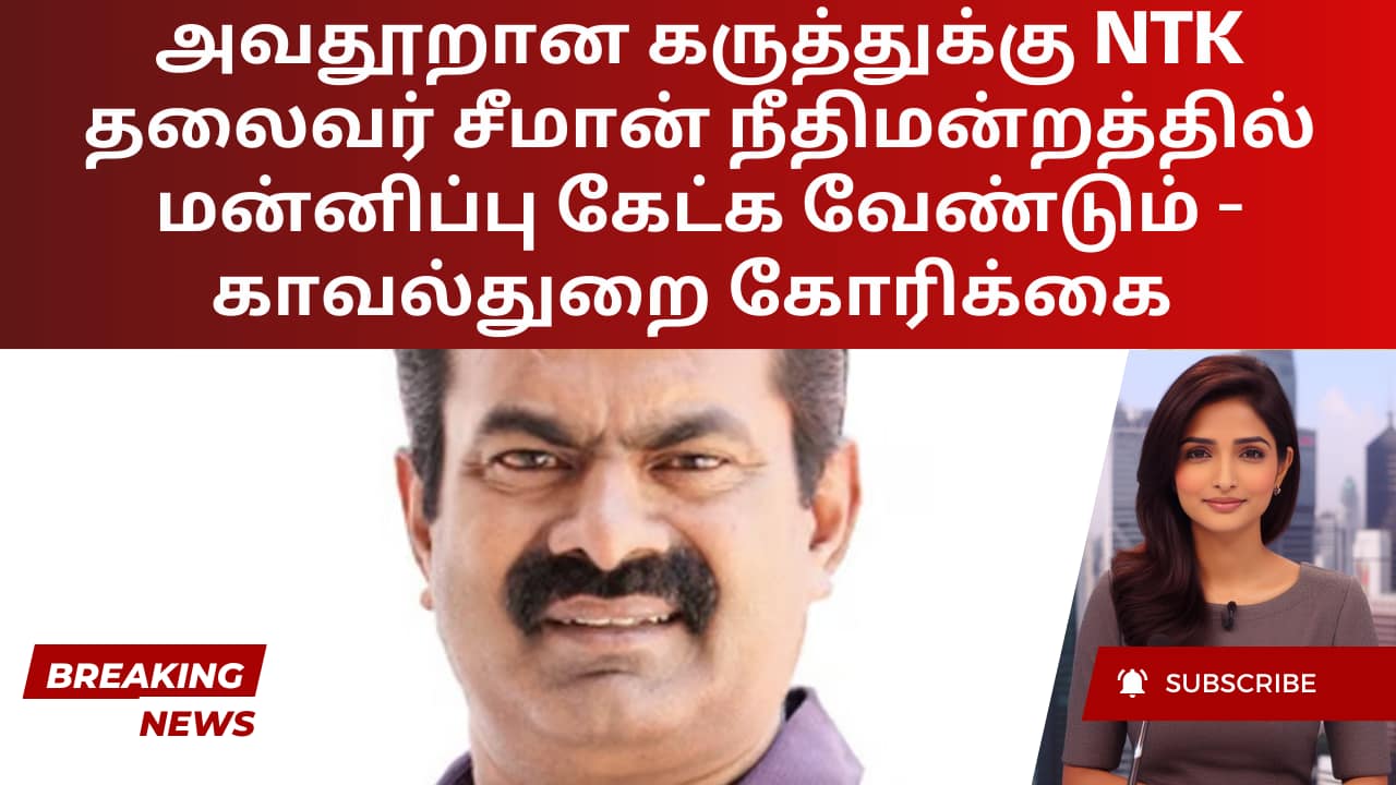 அவதூறான கருத்துக்கு NTK தலைவர் சீமான் நீதிமன்றத்தில் மன்னிப்பு கேட்க வேண்டும் – காவல்துறை கோரிக்கை
