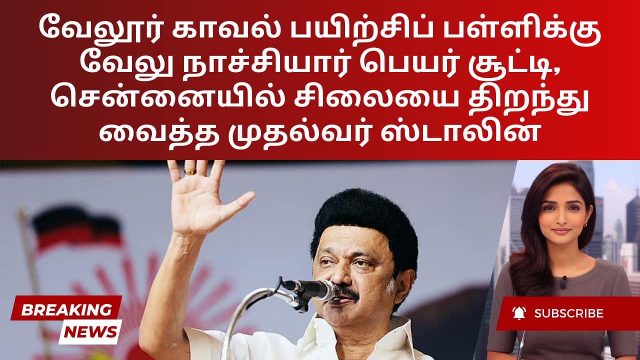 வேலூர் காவல் பயிற்சிப் பள்ளிக்கு வேலு நாச்சியார் பெயர் சூட்டி, சென்னையில் சிலையை திறந்து வைத்த முதல்வர் ஸ்டாலின்