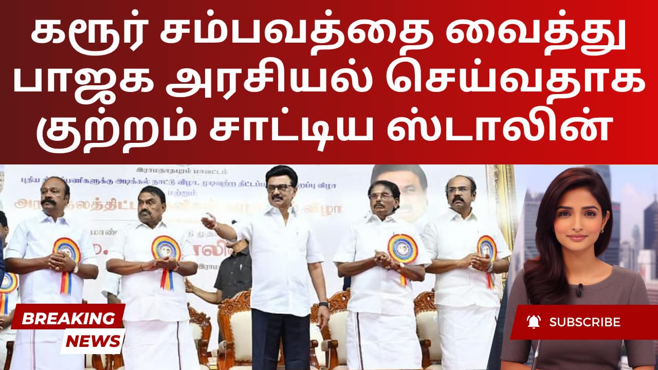 கரூர் கூட்ட நெரிசலை பாஜக தேர்தல் ஆதாயத்திற்காக பயன்படுத்திக் கொள்வதாக தமிழக முதல்வர் மு க ஸ்டாலின் வெள்ளிக்கிழமை குற்றம் சாட்டினார். ராமநாதபுரம் அருகே பேராவூரில் நடந்த அரசு விழாவில் உரையாற்றிய அவர், வரவிருக்கும் தேர்தல்களைக் கருத்தில் கொண்டு, இந்த சம்பவம் குறித்து விசாரணை ஆணையத்தை அமைக்க மத்திய அரசு எடுத்த முடிவு அரசியல் நோக்கம் கொண்டது என்று குற்றம் சாட்டினார். மணிப்பூர் வன்முறை மற்றும் கும்பமேளா விபத்து தொடர்பான விசாரணைகளில் மத்திய அரசு செயல்படாததுடன், தேசிய அளவில் சீற்றம் நிலவிய போதிலும், ஸ்டாலின் இதை வேறுபடுத்திப் பார்த்தார்.
