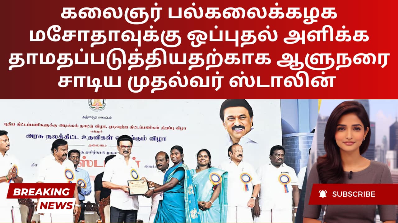 கலைஞர் பல்கலைக்கழக மசோதாவுக்கு ஒப்புதல் அளிக்க தாமதப்படுத்தியதற்காக ஆளுநரை சாடிய முதல்வர் ஸ்டாலின்