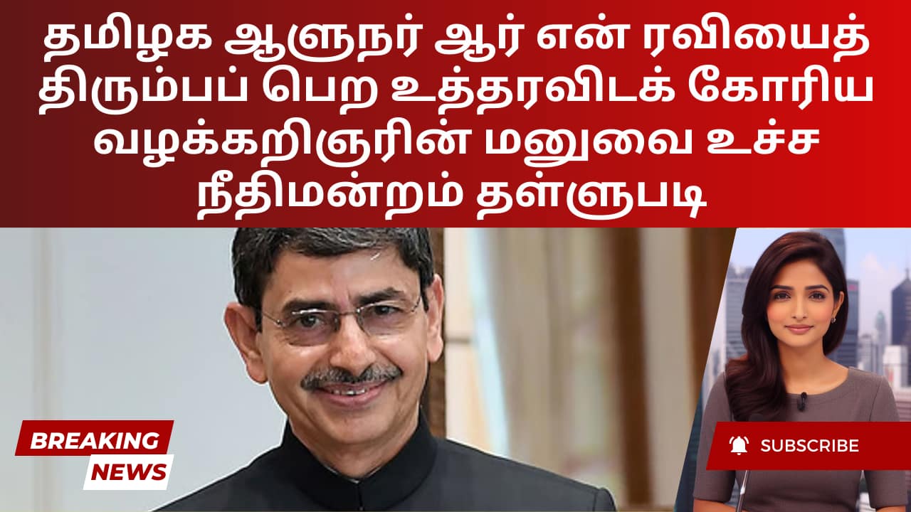 தமிழக ஆளுநர் ஆர் என் ரவியைத் திரும்பப் பெற உத்தரவிடக் கோரிய வழக்கறிஞரின் மனுவை உச்ச நீதிமன்றம் தள்ளுபடி