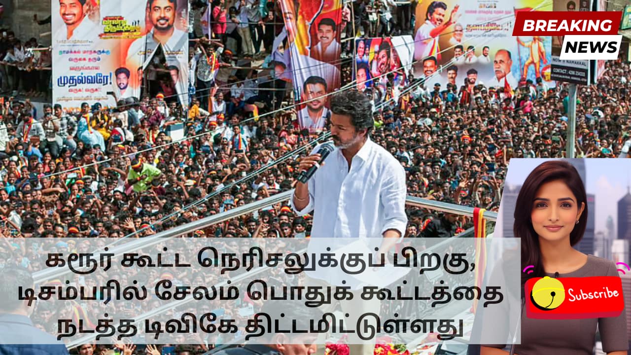 கரூர் துயர சம்பவத்திற்குப் பிறகு பிரச்சாரம் மீண்டும் தொடங்கியுள்ள நிலையில், டிசம்பர் 4 ஆம் தேதி சேலம் பேரணிக்கு டிவிகே ஒப்புதல்