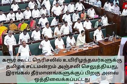 தமிழ்நாடு சட்டமன்றத்தின் குளிர்காலக் கூட்டத்தொடர் செவ்வாய்க்கிழமை தொடங்கியது. இரண்டு வாரங்களுக்கு முன்பு ஏற்பட்ட துயரகரமான கரூர் கூட்ட நெரிசலில் உயிரிழந்த 41 பேருக்கு அவையில் அஞ்சலி செலுத்தப்பட்டது. இ...