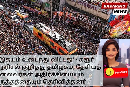 சனிக்கிழமை மாலை வேலுச்சாமிபுரத்தில் நடந்த டிவிகே தலைவர் விஜய்யின் பேரணியில் ஏற்பட்ட கூட்ட நெரிசலில் சிக்கி 39 பேர் உயிரிழந்தனர், 60க்கும் மேற்பட்டோர் காயமடைந்தனர். இந்த துயரச் சம்பவம் தமிழகம் முழுவதும...