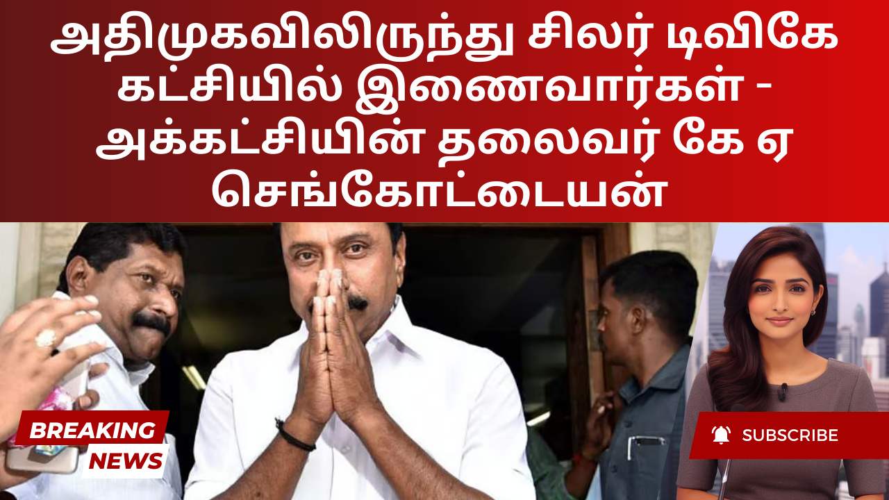 தமிழக வெற்றிக் கழகத்தின் தலைமை ஒருங்கிணைப்பாளர் கே ஏ செங்கோட்டையன், பொங்கலுக்குப் பிறகு அதிமுகவில் இருந்து சில தலைவர்கள் டிவிகே-வில் இணைய வாய்ப்புள்ளது என்று செவ்வாய்க்கிழமை தெரிவித்தார். பண்டிகைக்குப...