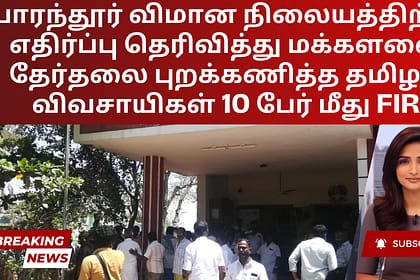 ஏப்ரல் 19ஆம் தேதி நடைபெற்ற மக்களவைத் தேர்தலைப் புறக்கணித்ததற்காக, பாரந்தூர் ஏகனாபுரத்தைச் சேர்ந்த 10 விவசாயிகள் மீது ஜாமீனில் வெளிவர முடியாத பிரிவுகளின் கீழ் வழக்குப் பதிவு செய்யப்பட்டுள்ளது. இந்த விவ...