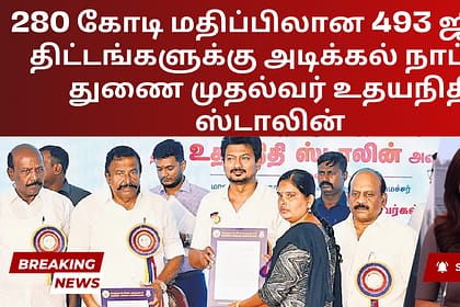 279.50 கோடி மதிப்பிலான 493 புதிய திட்டங்களுக்கு சென்னை ரிப்பன் கட்டிடத்தில் துணை முதல்வர் உதயநிதி ஸ்டாலின் திங்கள்கிழமை அடிக்கல் நாட்டினார். இந்த திட்டங்களில் மதிப்புமிக்க நீலக் கொடி சான்றிதழை அடைய மெ...