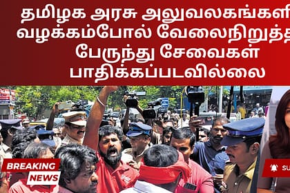 LPF, CITU, AITUC, மற்றும் INTUC போன்ற 12 மத்திய தொழிற்சங்கங்கள் அழைப்பு விடுத்திருந்த ஒரு நாள் வேலைநிறுத்தத்தின் போது, ​​மாநில செயலகம் உட்பட அரசு அலுவலகங்கள் வழக்கம் போல் செயல்பட்டன. தமிழ்நாடு முழுவது...