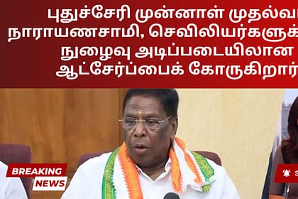 முன்னாள் முதல்வர் வி நாராயணசாமி வியாழக்கிழமை புதுச்சேரி அரசை, முன்னுரிமை அடிப்படையில் மதிப்பெண்கள் வழங்குவதற்குப் பதிலாக நுழைவுத் தேர்வுகள் மூலம் செவிலியர் ஆட்சேர்ப்பை நடத்த வேண்டும் என்று வலியுறுத்தி...