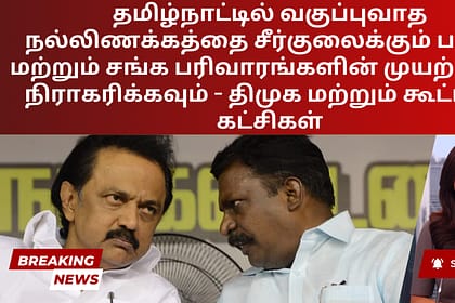 பாஜக மற்றும் சங்க பரிவார் மாநிலத்தில் மத நல்லிணக்கத்தை சீர்குலைக்கும் முயற்சிகளை நிராகரிக்குமாறு ஆளும் திமுக மற்றும் அதன் கூட்டணிக் கட்சிகள் தமிழக மக்களை வலியுறுத்தியுள்ளன. ஞாயிற்றுக்கிழமை வெளியிடப்பட...
