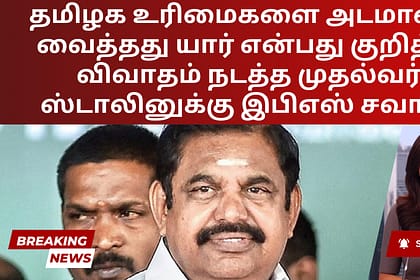 அதிமுக பொதுச் செயலாளர் எடப்பாடி கே பழனிசாமி, தமிழகத்தின் உரிமைகளை மத்திய அரசிடம் “அடமானம் வைத்தது” யார் என்பது குறித்து பொது விவாதத்திற்கு வருமாறு முதல்வர் ஸ்டாலினுக்கு சவால் விடுத்துள்ளார...