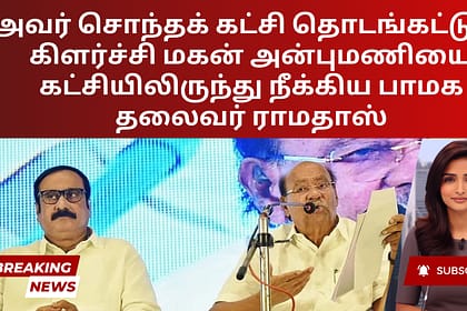 பாட்டாளி மக்கள் கட்சி நிறுவனர் டாக்டர் எஸ் ராமதாஸ் வியாழக்கிழமை தனது மகன் டாக்டர் அன்புமணி ராமதாஸை கட்சியிலிருந்து நீக்கி, அவரது செயல் தலைவர் பதவியை முடித்துக் கொண்டார், மேலும் அவரை முதன்மை உறுப்பினர்...