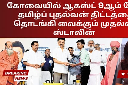 தமிழ்ப் புதல்வன் திட்டம் கோவையில் ஆகஸ்ட் 9ஆம் தேதி தொடங்கப்படும் என்று முதல்வர் ஸ்டாலின் புதன்கிழமை அறிவித்தார். அரசு மற்றும் அரசு உதவி பெறும் பள்ளிகளில் 6 முதல் 12 ஆம் வகுப்பு வரை தமிழ் வழியில் படித்...