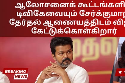 தமிழ்நாட்டில் உள்ள அரசியல் கட்சிகளுடன் நடத்தப்படும் அனைத்து ஆலோசனைக் கூட்டங்களிலும் தனது கட்சியை உடனடியாகச் சேர்க்க வேண்டும் என்று இந்தியத் தேர்தல் ஆணையத்திடம் டிவிகே தலைவர் விஜய் இரண்டு தனித்தனி பிரத...