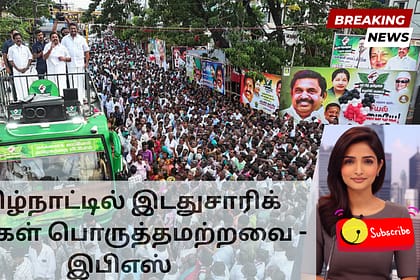 தென்காசியில் புதன்கிழமை நடைபெற்ற பொதுக் கூட்டத்தில், இடதுசாரிக் கட்சிகளை கடுமையாக விமர்சித்த அதிமுக பொதுச் செயலாளர் எடப்பாடி கே பழனிசாமி, இடதுசாரிக் கட்சிகள் தமிழகத்தில் அரசியல் ரீதியாக பொருத்தமற்றவைய...