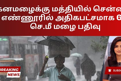 பிராந்திய வானிலை ஆய்வு மையம் படி, திங்கட்கிழமை காலை 8:30 மணி முதல் காலை 8:00 மணி வரை சென்னை சராசரியாக 6.9 செ.மீ மழையை பதிவு செய்துள்ளது. எண்ணூர் அதிக மழையைப் பெற்றது. அதைத் தொடர்ந்து மணாலி, கோலதூர், ட...