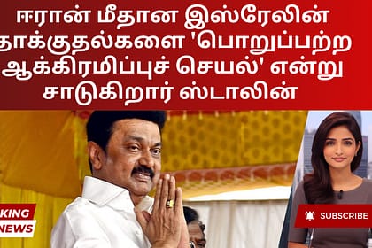 ஈரான் மீதான இஸ்ரேலின் சமீபத்திய தாக்குதல்களை தமிழக முதல்வர் ஸ்டாலின் கடுமையாகக் கண்டித்தார், அவற்றை “ஒரு பொறுப்பற்ற ஆக்கிரமிப்புச் செயல்” என்றும், இது பிராந்தியத்திலும் அதற்கு அப்பாலும் மி...