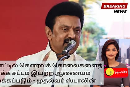 தமிழ்நாட்டில் கௌரவக் கொலைகளைத் தடுப்பதற்கான நடவடிக்கைகளை முன்மொழிய புதிய ஆணையம் அமைக்கப்படுவதாக முதலமைச்சர் மு.க. ஸ்டாலின் வியாழக்கிழமை அறிவித்தார். ஓய்வுபெற்ற சென்னை உயர்நீதிமன்ற நீதிபதி கே என் பாஷா ...