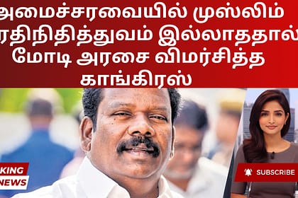 நரேந்திர மோடி தலைமையிலான தேசிய ஜனநாயகக் கூட்டணி அரசு முஸ்லிம்களை அமைச்சரவையில் சேர்க்கவில்லை என்றும், அவர்களுக்கு நாடாளுமன்ற இடங்களை ஒதுக்கத் தவறிவிட்டதாகவும் தமிழ்நாடு காங்கிரஸ் கமிட்டித் தலைவர் கே ச...