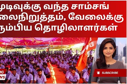 சாம்சங் இந்தியாவின் ஸ்ரீபெரும்புதூர் உற்பத்திப் பிரிவில் சிஐடியு ஆதரவு பெற்ற சாம்சங் இந்தியா தொழிலாளர் சங்கம் நடத்திய ஒரு மாத கால வேலைநிறுத்தம் வெள்ளிக்கிழமை முடிவடைந்தது, தொழிலாளர்கள் வேலைக்குத் திரு...