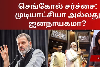 5 அடி நீளமுள்ள தங்க முலாம் பூசப்பட்ட செங்கோல், தற்போது நடந்து வரும் நாடாளுமன்றக் கூட்டத்தொடரில், அரசு மற்றும் எதிர்க்கட்சிகளுக்கு இடையே சர்ச்சையை ஏற்படுத்தியுள்ளது. சமாஜ்வாடி கட்சி எம்பி ஆர்.கே.சௌத்ரி...