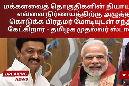 மக்களவைத் தொகுதிகளின் நியாயமான எல்லை நிர்ணயம் குறித்து விவாதிக்க பிரதமர் நரேந்திர மோடியுடன் தமிழக முதல்வர் ஸ்டாலின் சந்திப்புக்கு அனுமதி கோரியுள்ளார். பல்வேறு அரசியல் கட்சிகளைச் சேர்ந்த நாடாளுமன்ற உறு...
