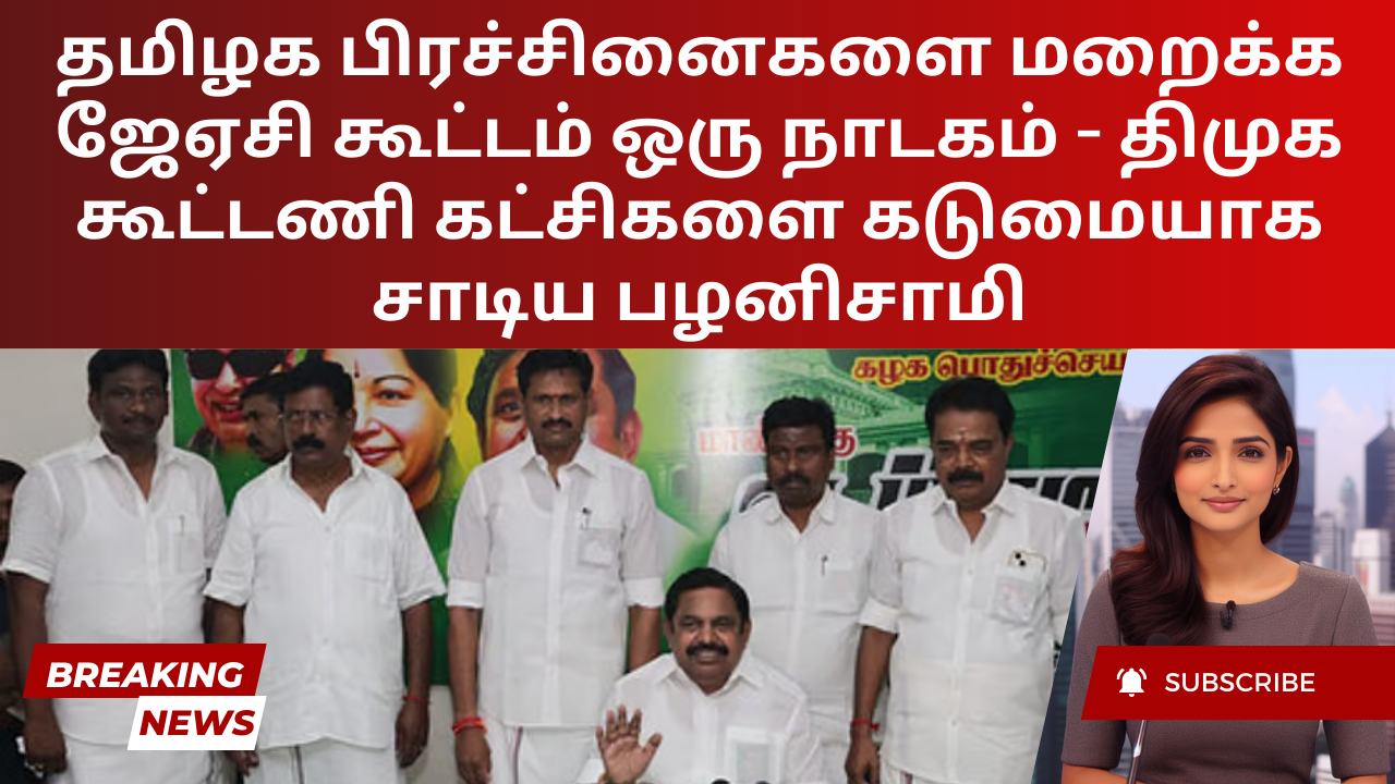 தமிழக முதல்வர் ஸ்டாலின் கூட்டிய கூட்டு நடவடிக்கைக் குழு கூட்டத்தை, மாநிலத்தில் உள்ள முக்கிய பிரச்சினைகளிலிருந்து பொதுமக்களின் கவனத்தைத் திசைதிருப்பும் நோக்கில் நடத்தப்பட்ட வெறும் நாடகம் என்று அதிமுக ...
