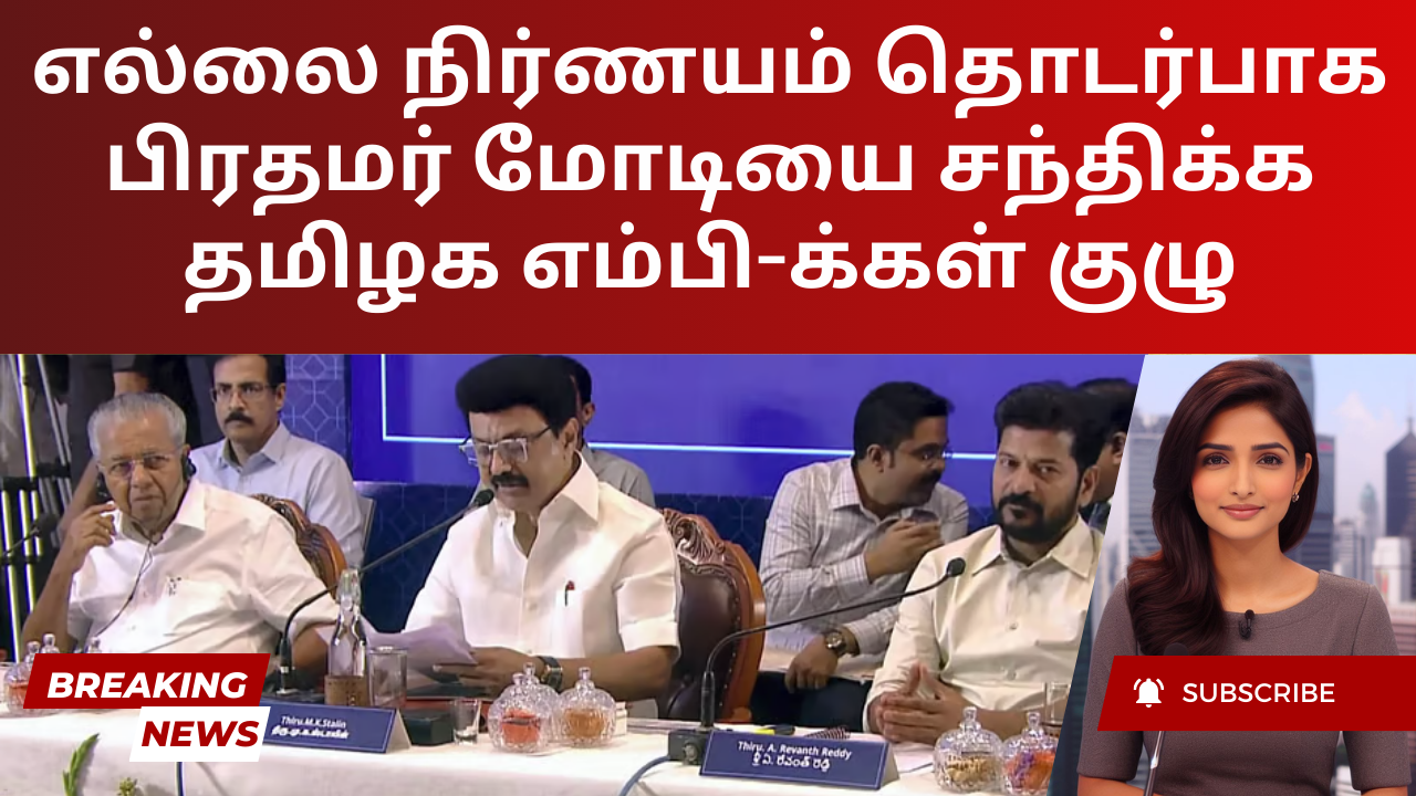 2026 மக்களவைத் தொகுதிகளின் எல்லை நிர்ணயம் தொடர்பான பிரச்சினைகள் குறித்து விவாதிக்க தமிழ்நாட்டைச் சேர்ந்த நாடாளுமன்ற உறுப்பினர்கள் குழு விரைவில் பிரதமர் நரேந்திர மோடியைச் சந்திக்கும் என்று முதல்வர் ஸ்ட...