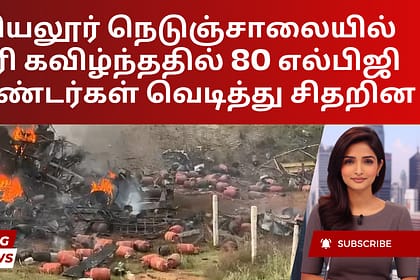 அரியலூர் மாவட்டம் வாரணவாசி அருகே ஆத்தூர்-தஞ்சாவூர் தேசிய நெடுஞ்சாலையில் செவ்வாய்க்கிழமை காலை நூற்றுக்கணக்கான LPG சிலிண்டர்களை ஏற்றிச் சென்ற லாரி கவிழ்ந்து தீப்பிடித்தது. இந்த விபத்து ஒரு பெரிய வெடிப்ப...