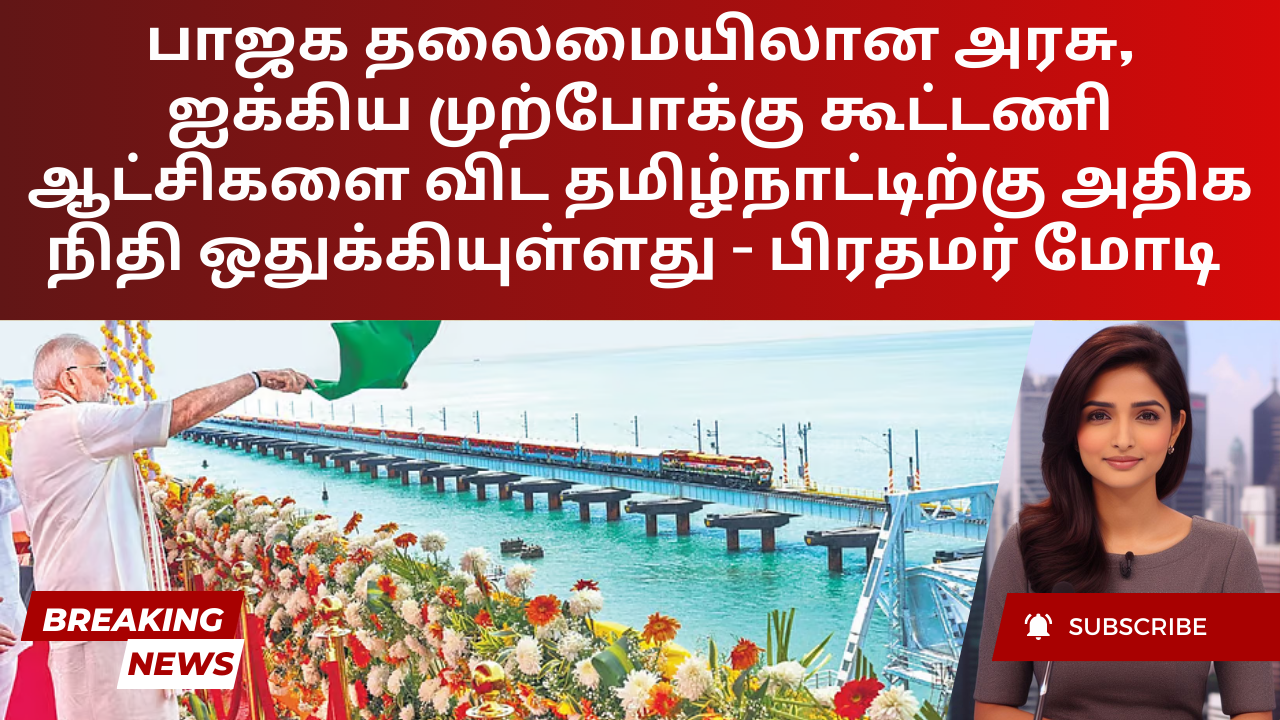 ராமேஸ்வரத்தில் நடந்த ஒரு நிகழ்வில் பிரதமர் நரேந்திர மோடி, பாஜக தலைமையிலான மத்திய அரசு, முந்தைய ஐக்கிய முற்போக்கு கூட்டணி ஆட்சிகளை விட மூன்று மடங்கு அதிக நிதியை தமிழ்நாட்டிற்கு ஒதுக்கியுள்ளது என்றும், ...
