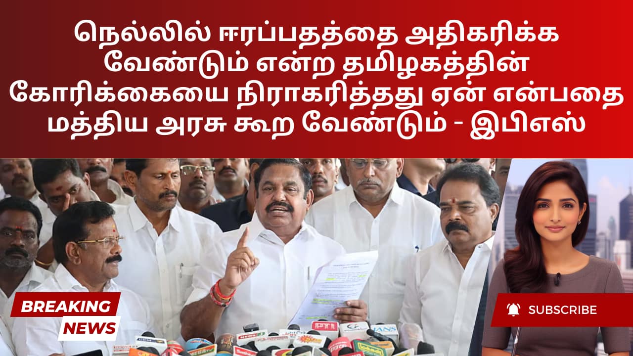 நெல்லில் ஈரப்பதத்தை அதிகரிக்க வேண்டும் என்ற தமிழகத்தின் கோரிக்கையை நிராகரித்தது ஏன் என்பதை மத்திய அரசு கூற வேண்டும் – இபிஎஸ்