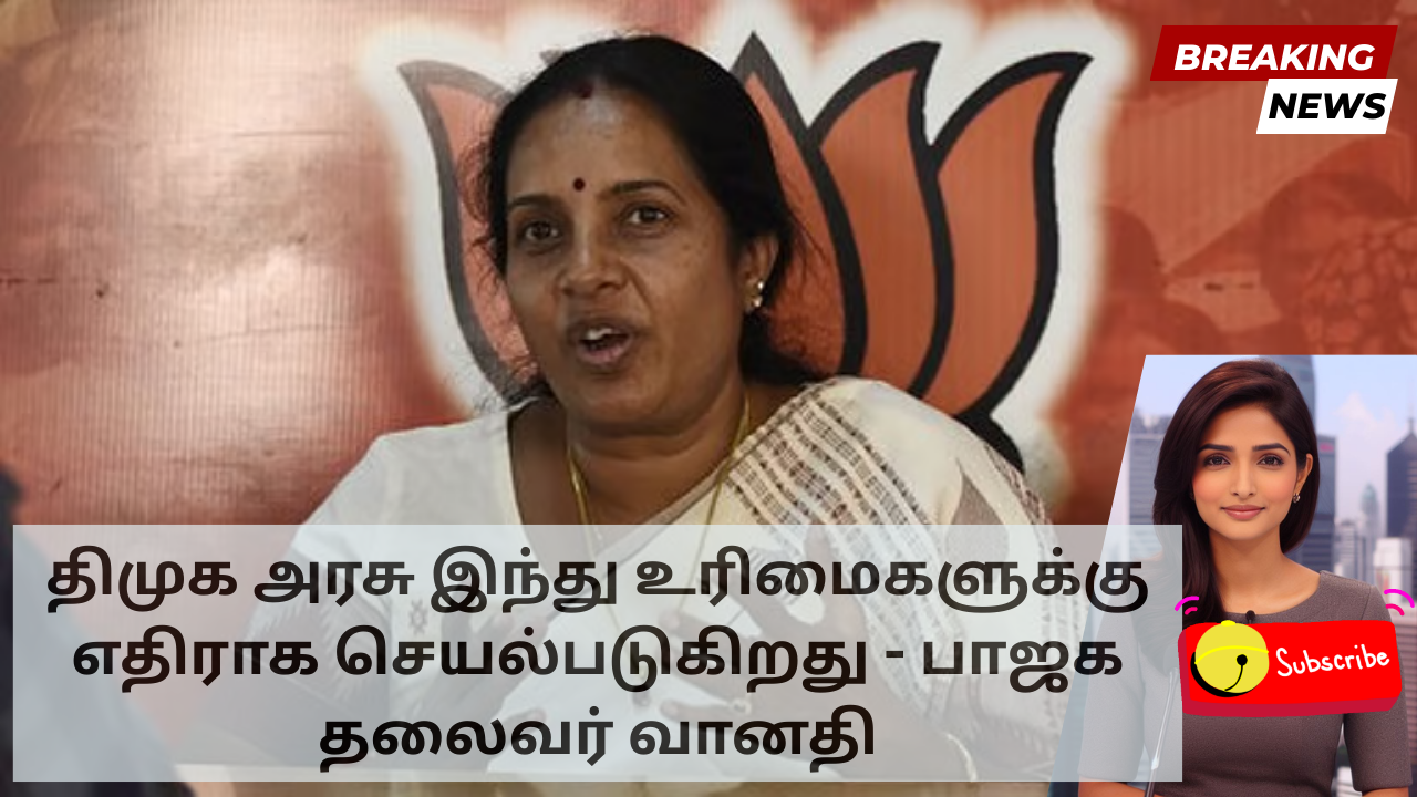 பாஜக மகிளா மோர்ச்சா தேசியத் தலைவரும் கோவை தெற்கு எம்எல்ஏவுமான வானதி சீனிவாசன் புதன்கிழமை, திமுக அரசு இந்து உரிமைகளுக்கு எதிராகச் செயல்படுவதாகக் குற்றம் சாட்டினார். மதுரையில் திருப்பரங்குன்றம் மலையில் ...