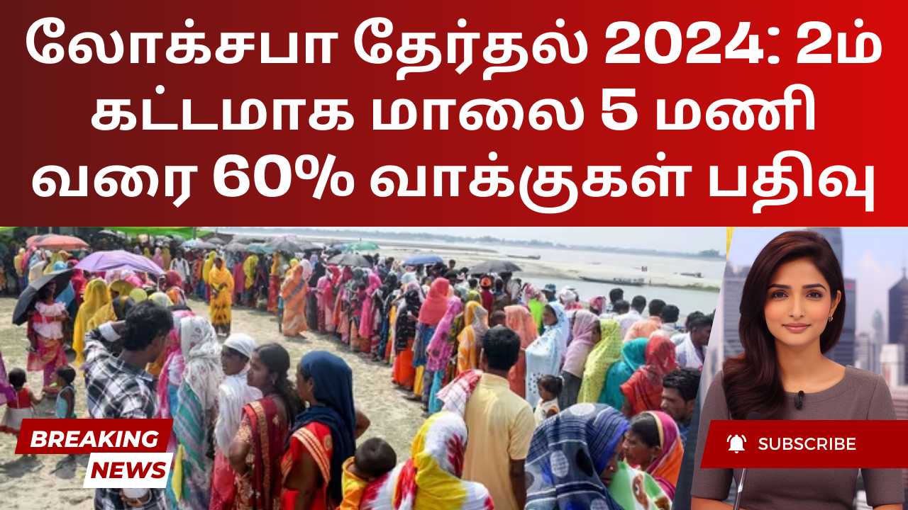 2024 ஆம் ஆண்டு மக்களவைத் தேர்தலின் இரண்டாம் கட்டத் தேர்தலில், பல்வேறு மாநிலங்கள் மற்றும் யூனியன் பிரதேசங்களில் வாக்குப்பதிவு அதிகரித்தது. திரிபுரா 77.93% வாக்குப்பதிவுடன் முன்னணியில் உள்ளது, அதைத் தொட...