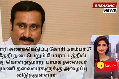 பாமக தலைவர் டாக்டர் அன்புமணி ராமதாஸ் ஞாயிற்றுக்கிழமை, திமுக தவிர அனைத்து அரசியல் கட்சிகளுக்கும் மற்றும் பல்வேறு சமூக அமைப்புகளுக்கும் ஒரு கடிதம் அனுப்பி, டிசம்பர் 17 ஆம் தேதி சென்னையில் நடைபெற உள்ள கட...