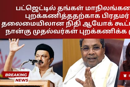 ஜூலை 27 அன்று பிரதமர் நரேந்திர மோடி தலைமையில் நடைபெறவிருக்கும் NITI ஆயோக் கூட்டத்தை புறக்கணிப்பதாக நான்கு முதல்வர்கள் தங்கள் முடிவை அறிவித்தனர். தங்கள் மாநிலங்களின் கோரிக்கைகளை மத்திய பட்ஜெட் புறக்கணி...